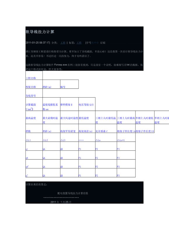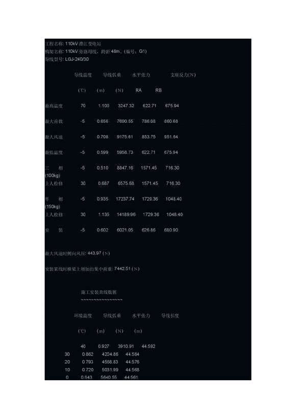 澧江变增容工程需进行构架受力计算,要不加大了导线截面,不放心啦!这是我第一次进行软导线拉力计算,还真不容易!不过经过一天的努力,终于有些眉目了。