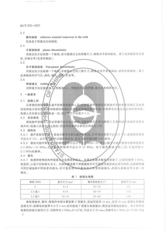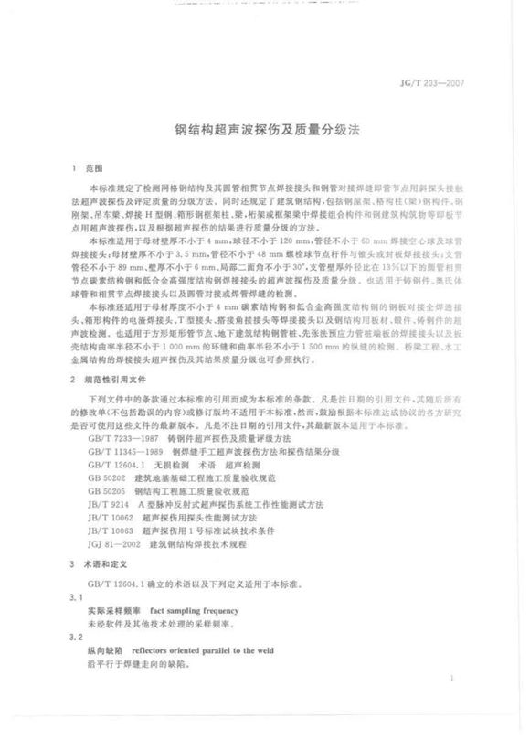 JG-T203-2007钢结构超声波探伤及质量分级法