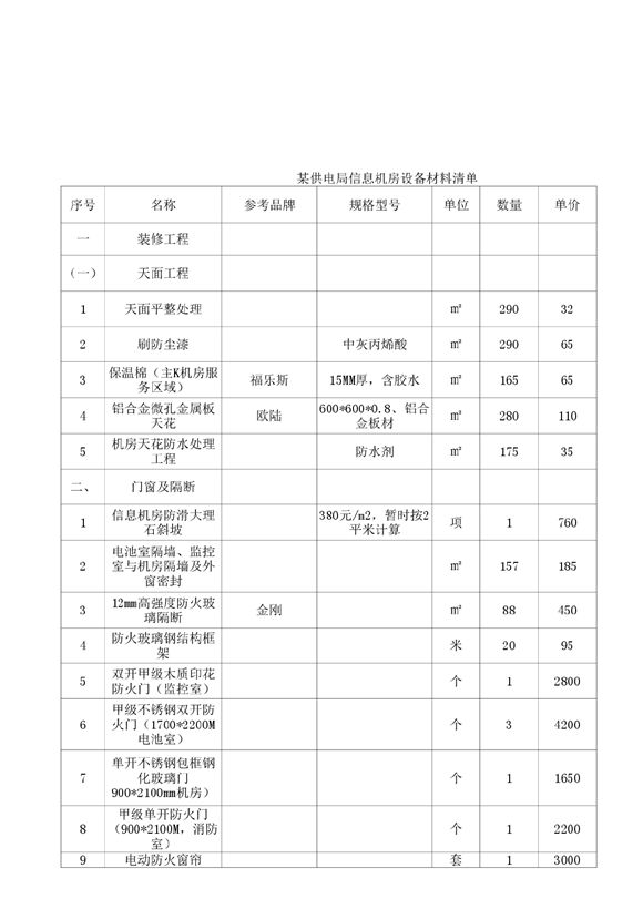 含机房的各个子系统,有详细报价,excel格式,下下来改改数量就可以用。