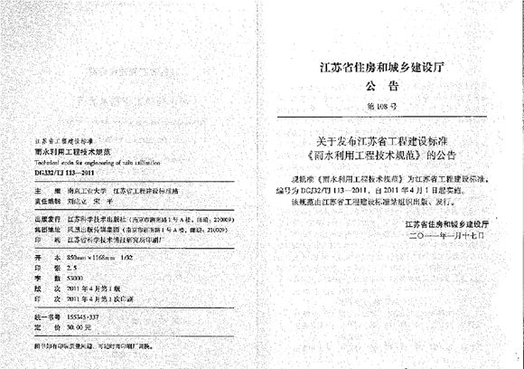 DGJ32/TJ113-2011 江苏省工程建设标准 雨水利用工程技术规范