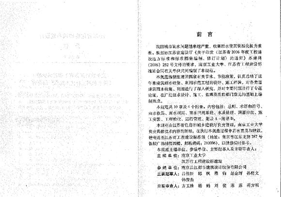 本规范共10章及4个附录。内容包括:总则、术语和符号、雨水收集、雨水利用、雨水回用系统、水质处理、调蓄排放、施工安装、工程验收、运行管理、附录A~附录D