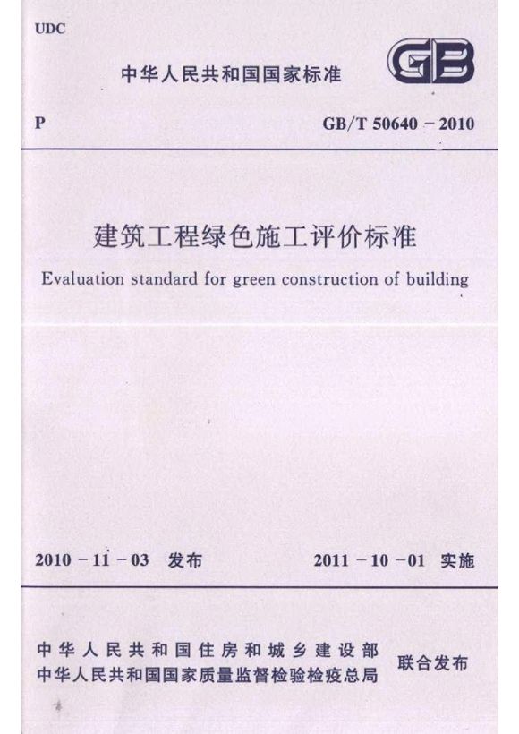 本资料为GBT50640-2010建筑工程绿色施工评价标准,内容全面详细可供大家参考。