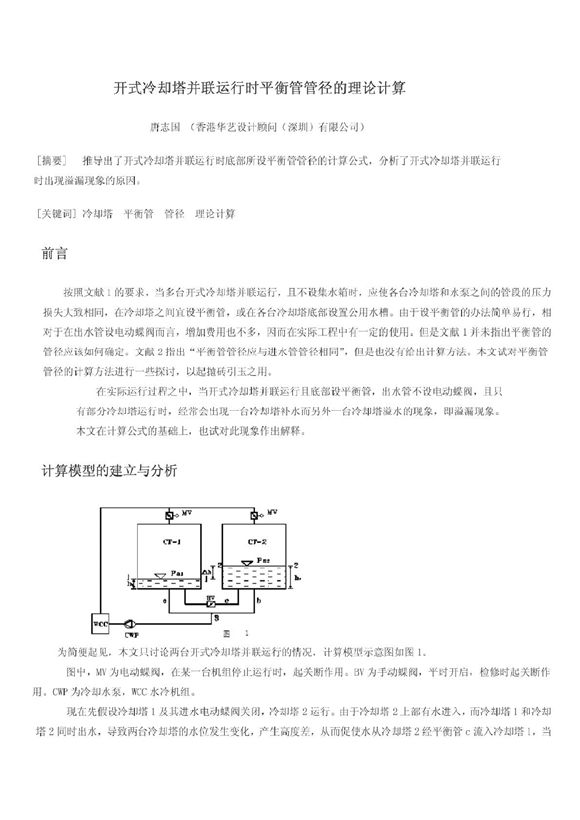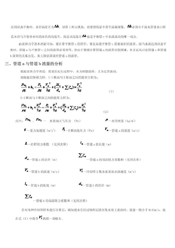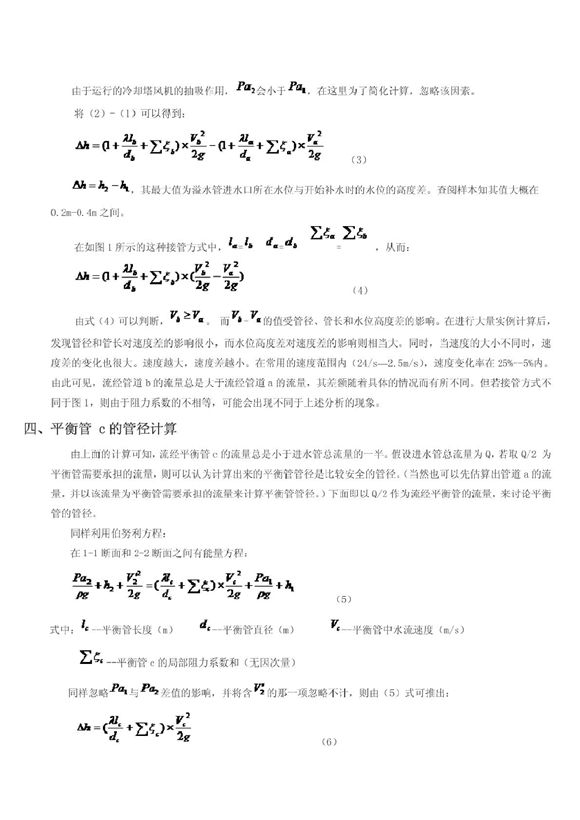 开式冷却塔并联运行平衡管管径计算