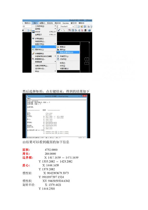 使用AutoCAD计算复杂截面的抗弯抗扭惯性矩的方法