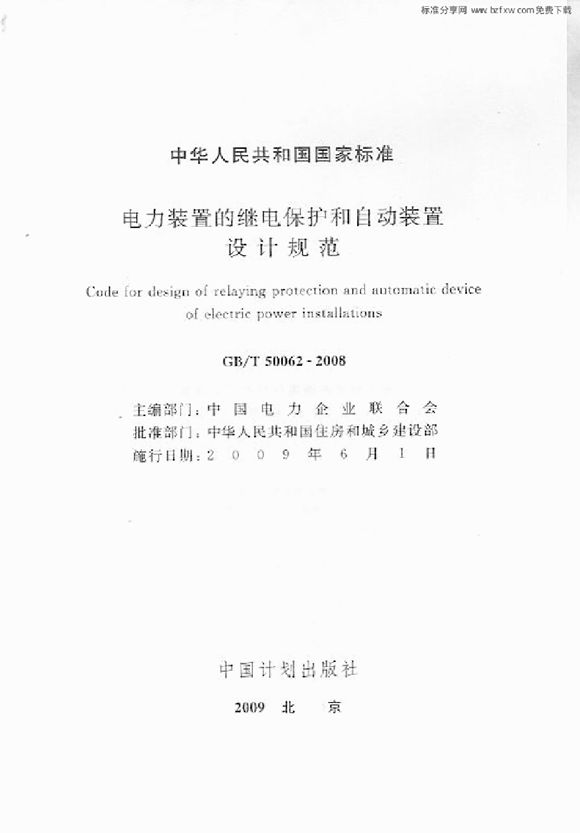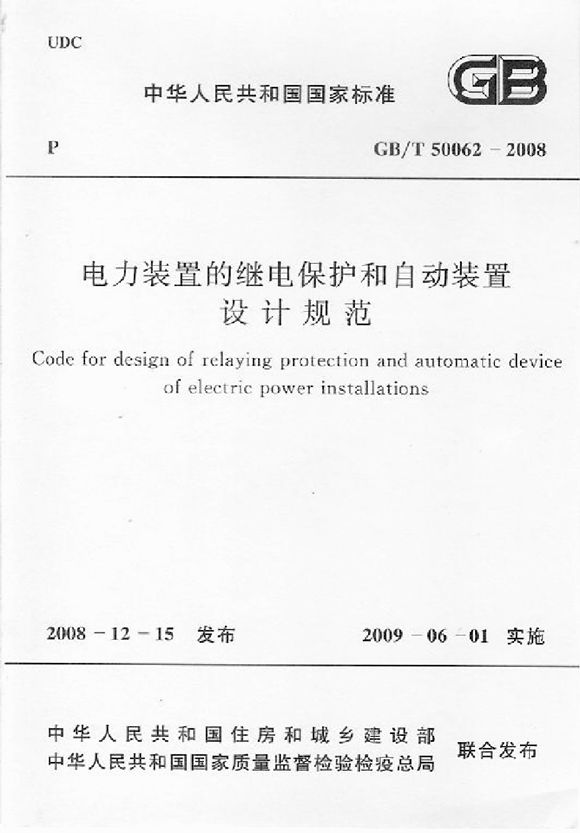 《电力装置的继电保护和自动装置设计规范》GB50062-2008