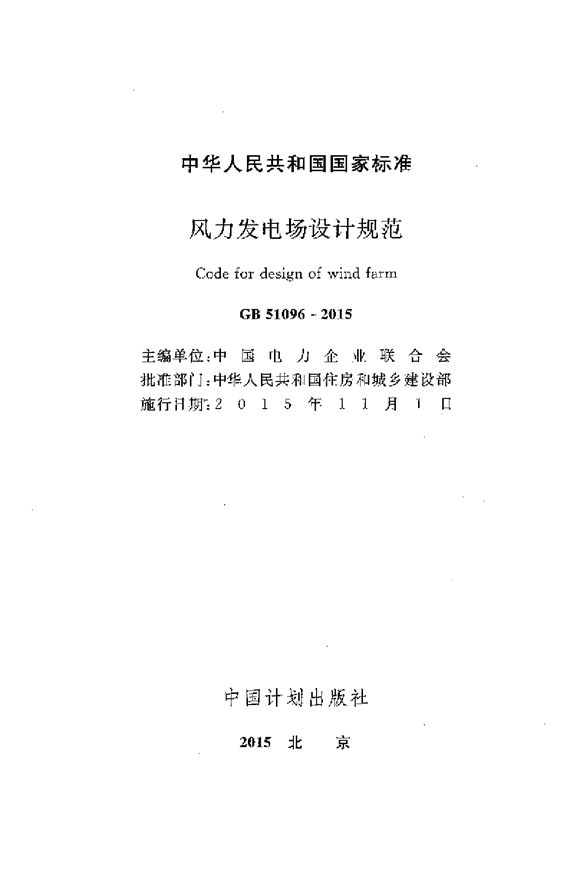 GB 51096-2015 《风力发电场设计规范》