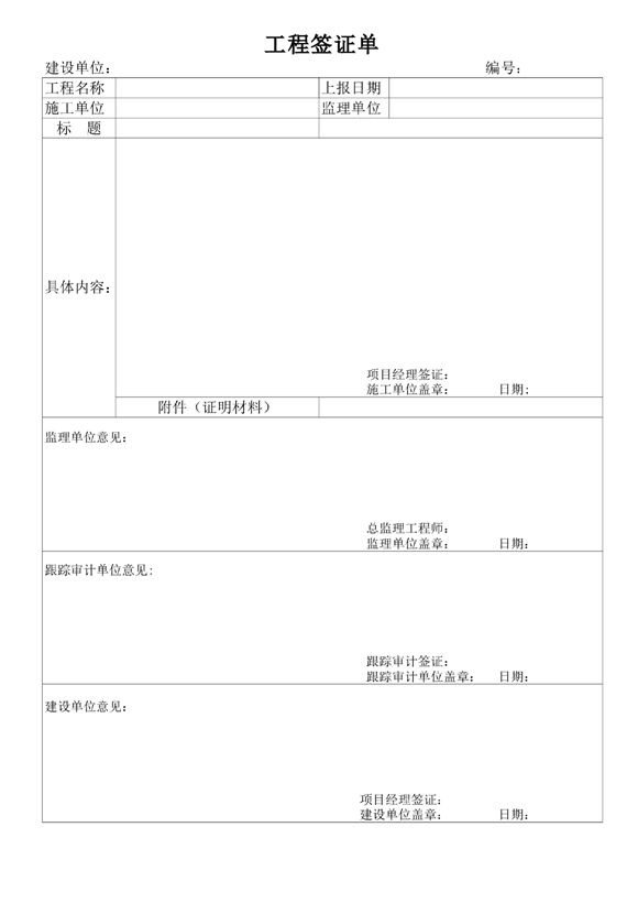 最新工程签证单表格模板文件,格式为EXCEL格式,需要者,可以下载。