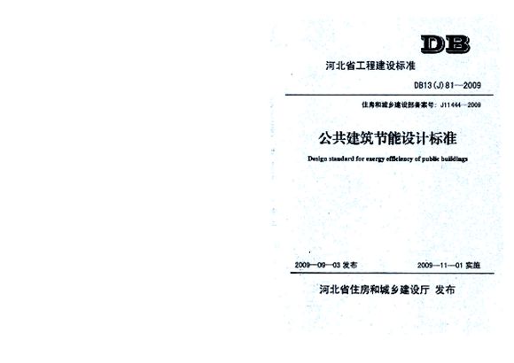 河北省公共建筑节能标准DB13(J)81---2009,地方性标准,内容详细可供参考。
