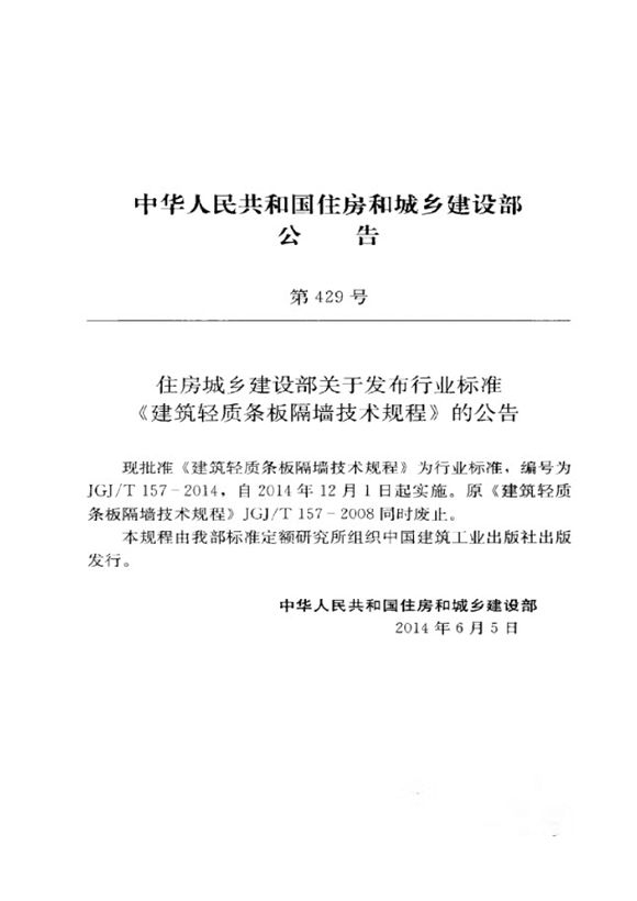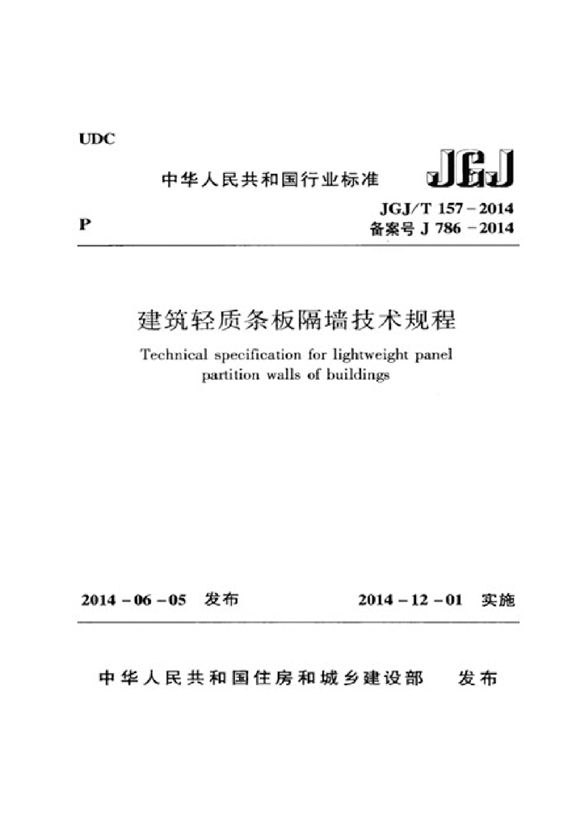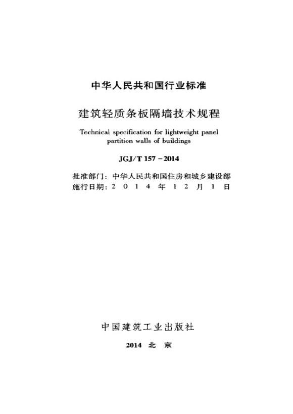 建筑轻质条板隔墙技术规程(附条文说明)JGJ-T 157-2014