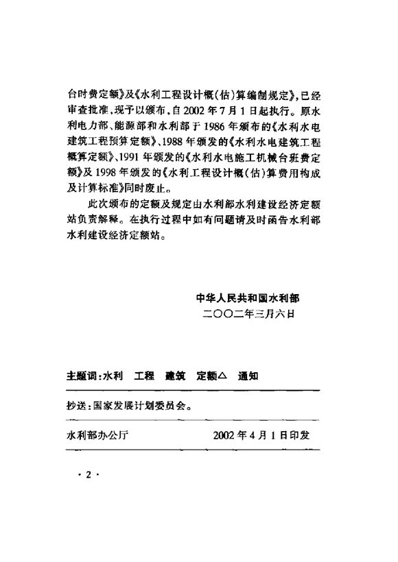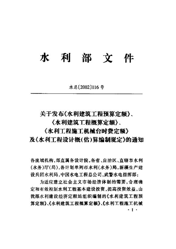 本文档资料为水利工程预算定额(2002),内容详细清晰,具有很高的参考价值,可下载参考使用。