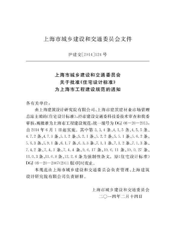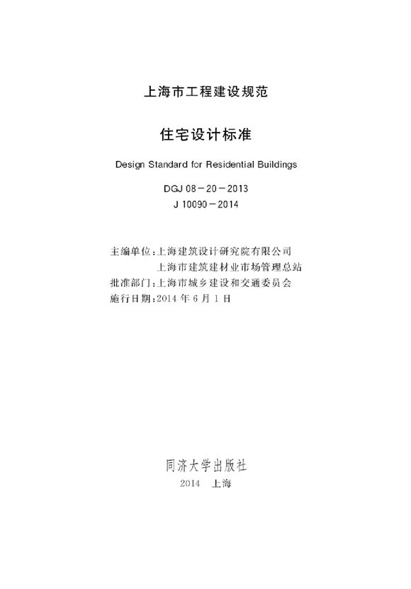 上海市住宅设计规范 DGJ08-20-2014