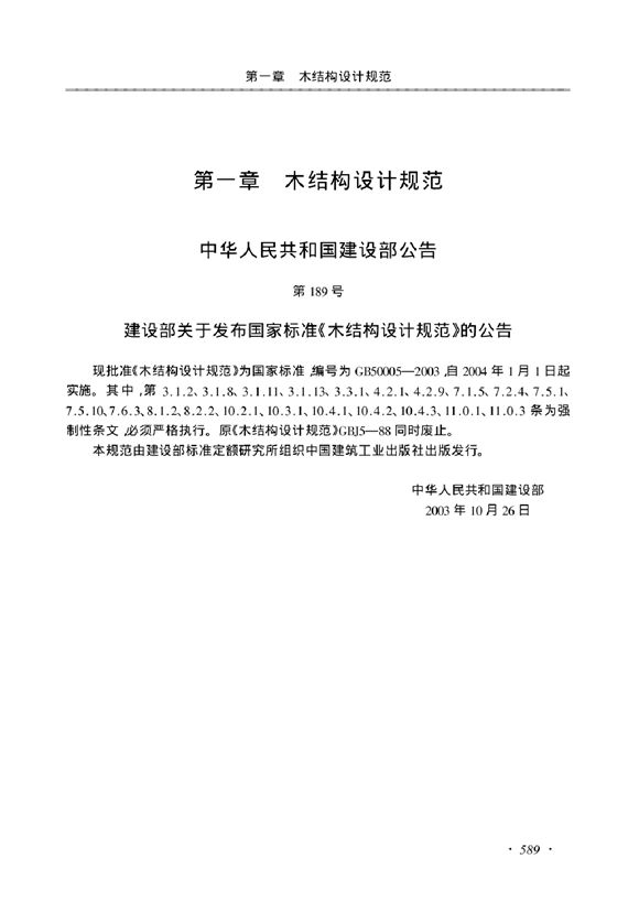 GB50005-2003《木结构设计规范》:建设部关于发布国家标准《木结构设计规范》的公告