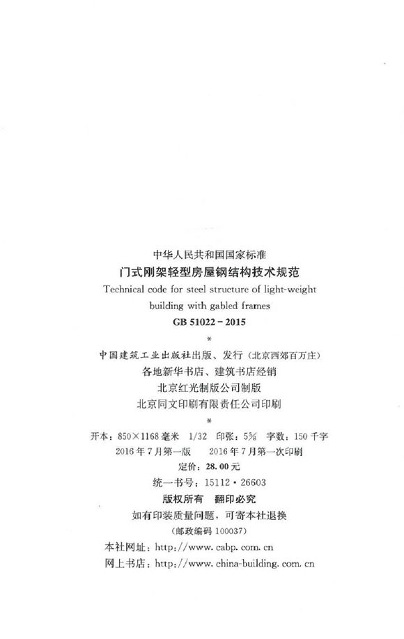 《门式刚架轻型房屋钢结构技术规范》_GB 51022-2015