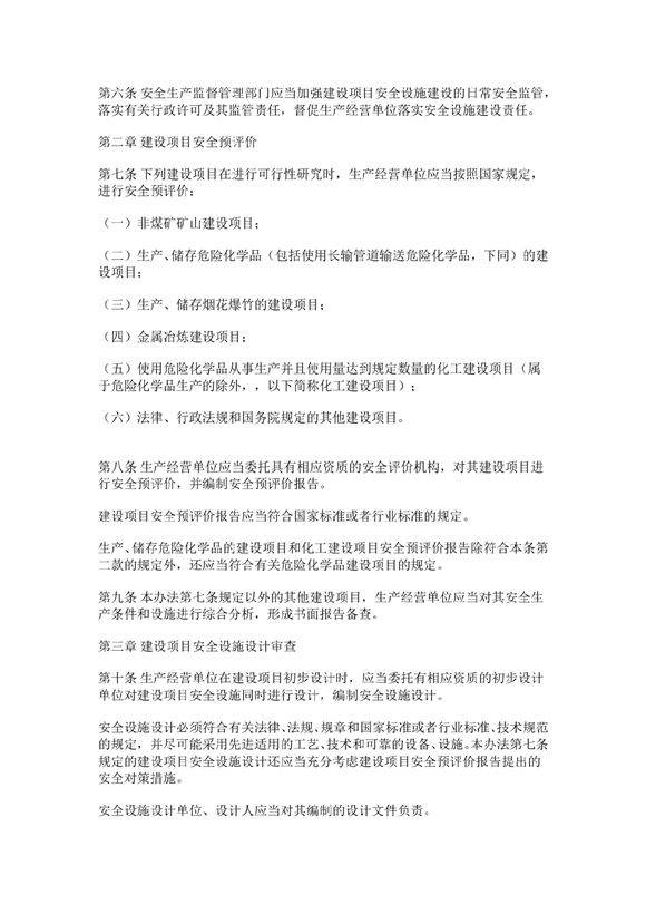 第一章总则第一条为加强建设项目安全管理,预防和减少生产安全事故,保障从业人员生命和财产安全,根据《中华人民共和国安全生产法》和《国务院关于进一步加强企业安全生产工作的通知》等法律、行政法规和规定
