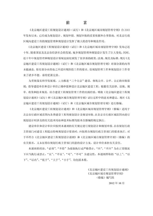 2012年最新修编,包括《北京地区建设工程规划设计通则》和《北京地区城市规划管理守则》