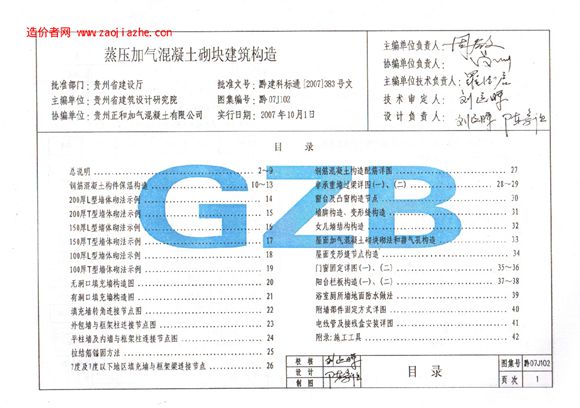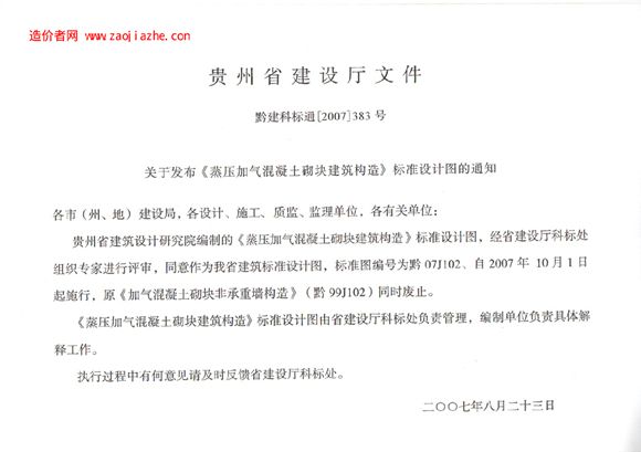 黔07J102蒸压加气混凝土砌块建筑构造图集