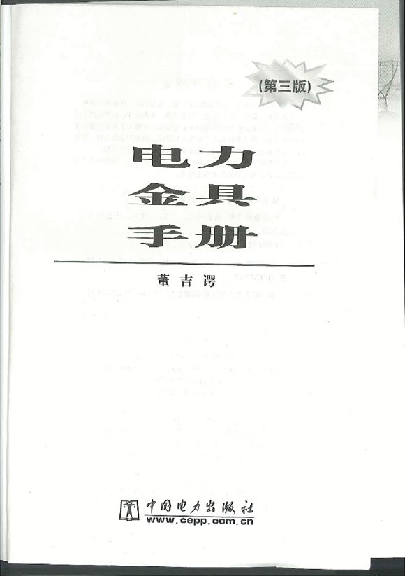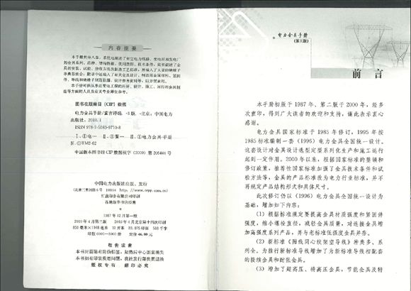 电力金具手册(2010第三版)详细介绍了金具的产品系列、结构性能、使用说明、技术要求、安装、试验方法及金具制造工艺标准、产品检验等,并编入了大量的绝缘子串典型组合、钢芯铝绞线新标准及尚未纳入国标的其他