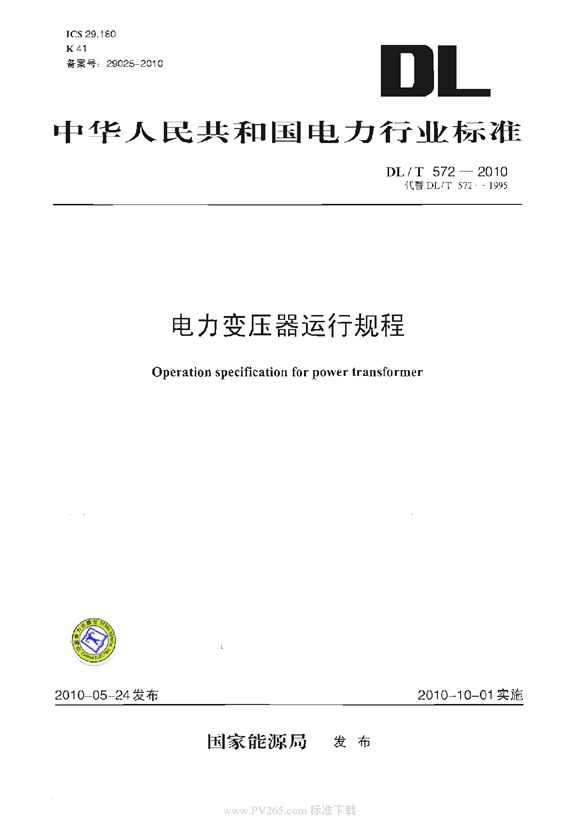 本资料为:DLT5722010电力变压器运行规程,很实用,欢迎下载参考。
