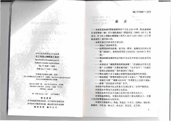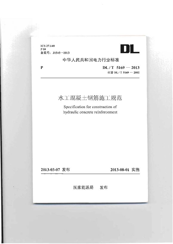 DLT5169-2013水工混凝土钢筋施工规范,用于水工混凝土结构设计。