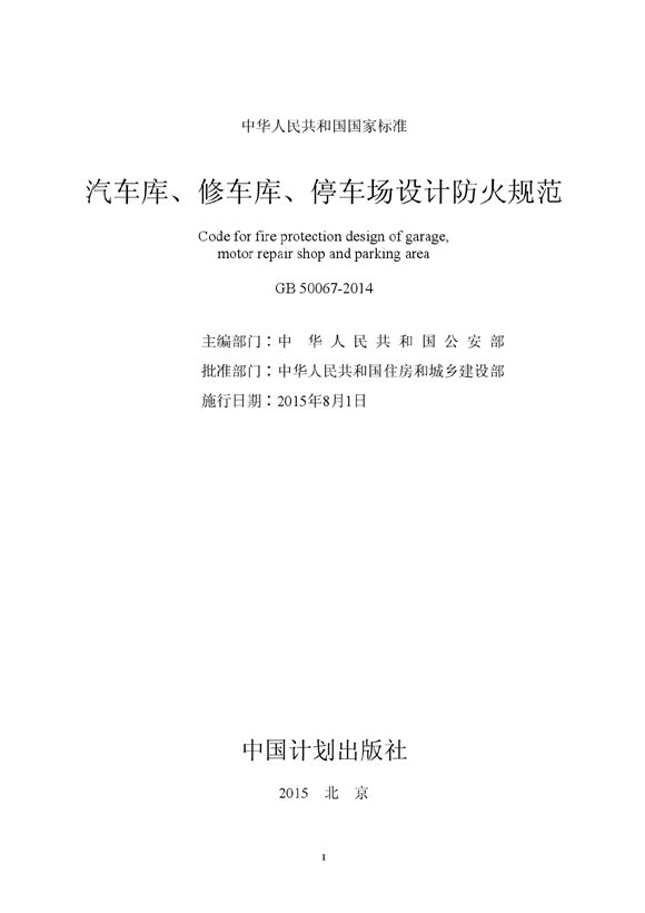 2015年8月1号即将执行的最新规范《汽车库、修车库、停车场设计防火规范》GB50067-2014完整PDF版,含条文解释