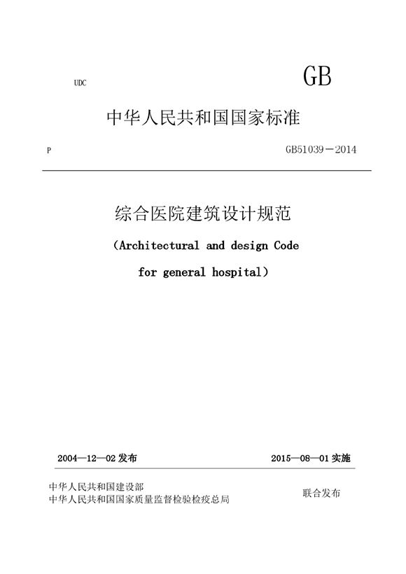 《综合医院建筑设计规范》GB51039-2014(高清扫描版)和《医院洁净手术部建筑技术规范》GB50333-2013