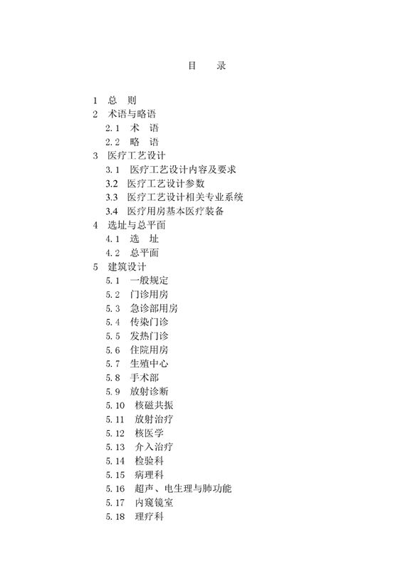 《综合医院建筑设计规范》GB51039-2014本规范工10章节1.目录2.术语与略语3.医疗工艺设计4.选址与总平面5.建筑设计6.给水排水、消防和污水处理7.采暖、通风及空调系统8