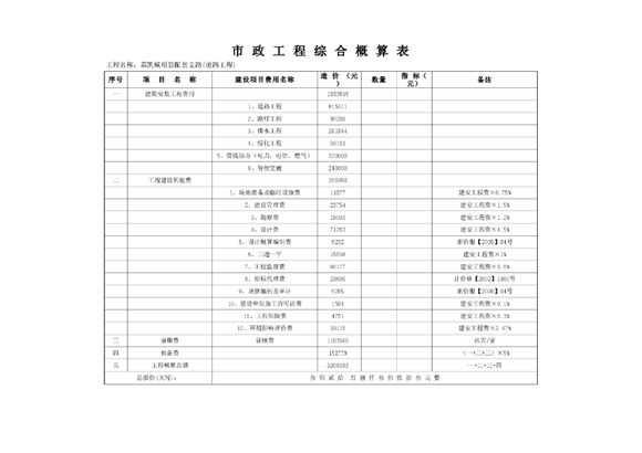 市政工程综合概算表