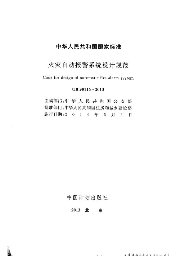 GB5016-2013火灾自动报警系统设计规范-高清扫描版