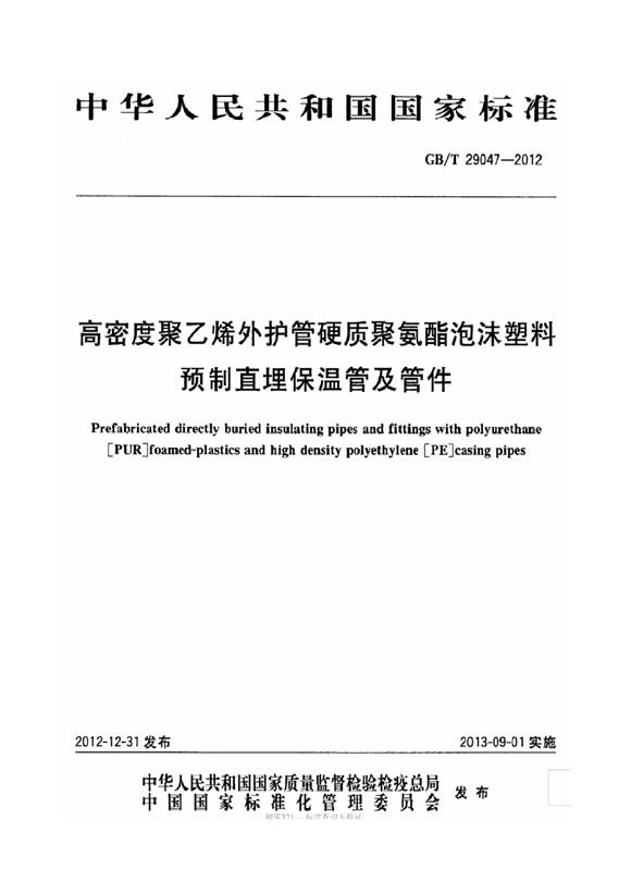 《高密度聚乙烯外护管硬质聚氨酯泡沫塑料预制直埋保温管及管件》GB/T29047-2012