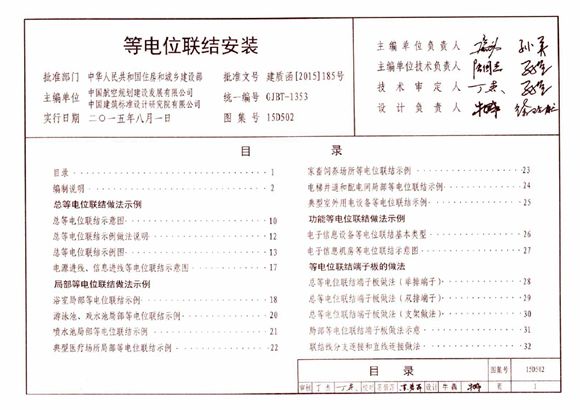本图集为最新版15D502等电位联结安装。扫描版,全套清晰版