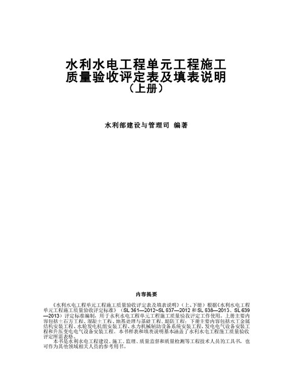 水利部2016年版《水利水电工程施工质量验收评定表及填表说明》上下册(修正完成)