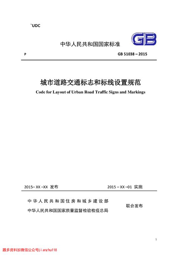 最新高清正版GB51038–2015城市道路交通标志和标线设置规范,内容详细丰富,可供网友参考下载。
