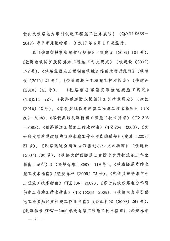 铁总建设[2017]37号关于发布《客货共线铁路路基工程施工技术规程》等7项建设标准的通知