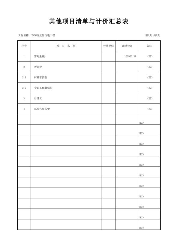 暂列金额、暂估价、材料暂估价、专业工程暂估价、计日工、总承包服务费