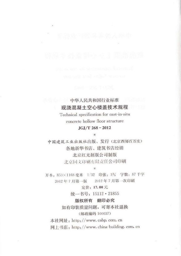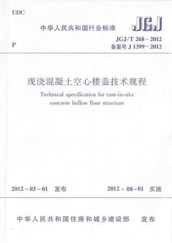 JGJ/T268-2012现浇混凝土空心楼盖技术规程 含条文说明
