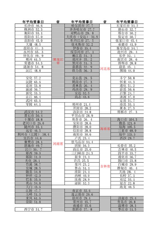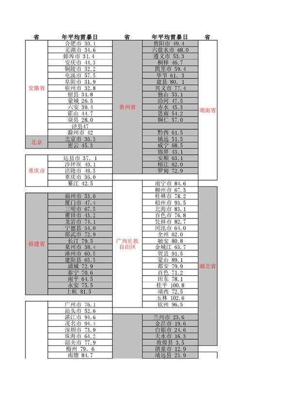 比较齐全的年平均雷暴日