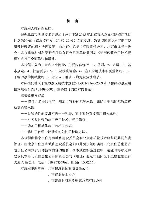 16年最新结构规范《预拌砂浆应用技术规程》DB11T696-2016