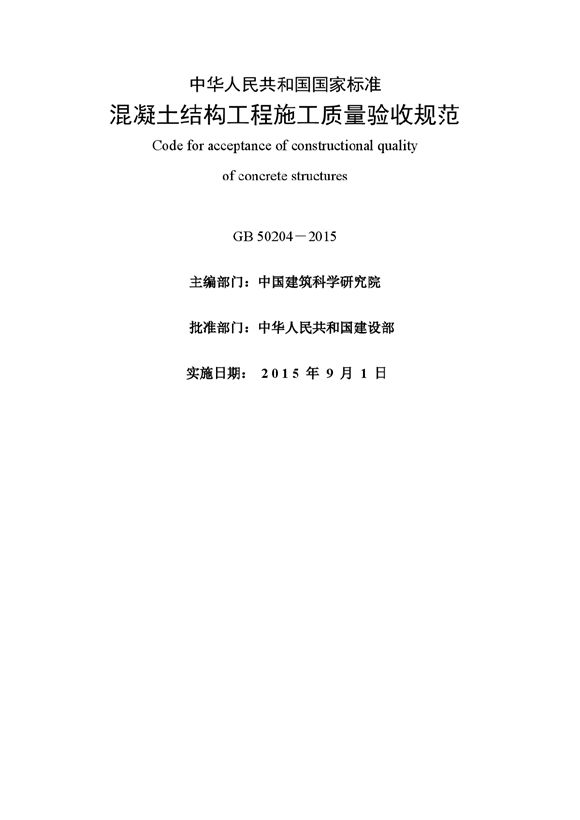 GB50204-2015混凝土结构工程施工质量验收规范,内容详细丰富,可供网友参考下载。