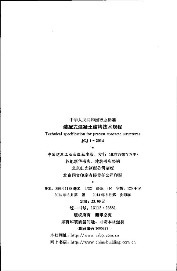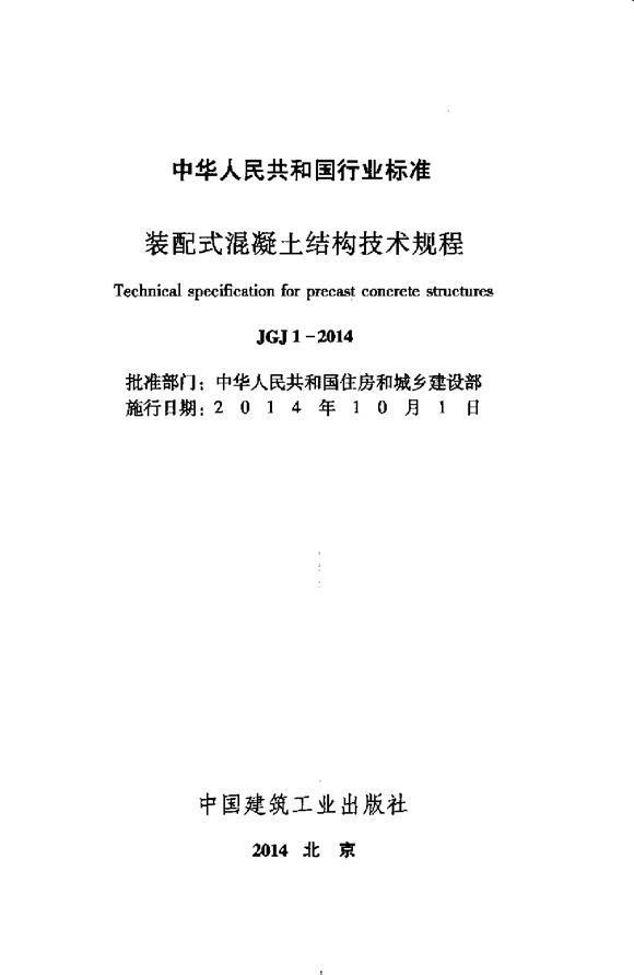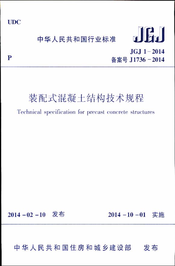 装配式混凝土结构技术规程JGJ1-2014,可供下载装配式混凝土结构技术规程JGJ1-2014【高清】