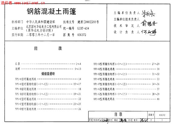 本图集为钢筋混凝土雨棚图集,分为钢筋混凝土悬挑板式雨棚和钢筋混凝土悬挑梁式雨棚两大类型。此两种雨棚类型均适用于烧结普通砖、烧结多孔砖和混凝土小型空心砌块砌筑的工业与民用多层砌体房屋建筑的外门雨棚。