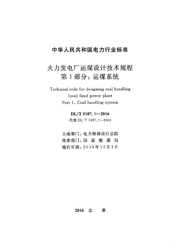 本资料为DL/T5187.1-2016火力发电厂运煤设计技术规程第1部分:运煤系统:内容详实,可供才考,欢迎大家下载。