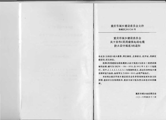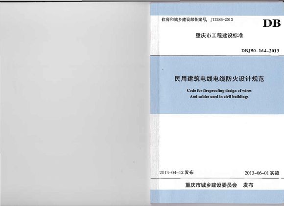 DBJ50-164-2013民用建筑电线电缆防火设计规范