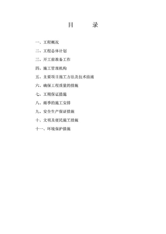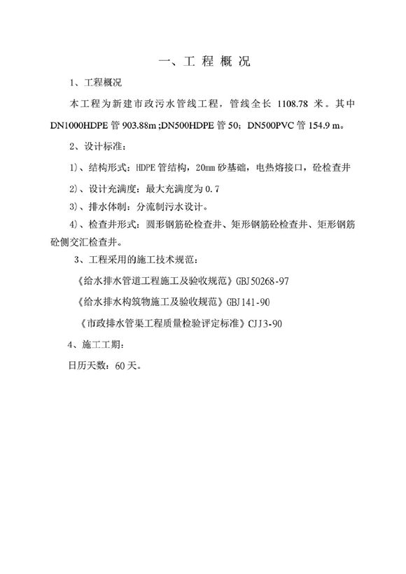 市政管道施工组织设计,一、工程概况二、工程总体计划三、开工前准备工作四、施工管理机构五、主要项目施工方法及技术措施六、确保工程质量的措施七、工期保证措施八、雨季的施工安排九、安全生产保