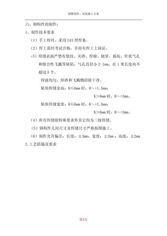 本文围绕编制依据、工程概况、土建部分、施工准备工作、钢构件的制作、钢构件的安装、质量保证措施等要点,介绍了某工程关于钢梯制作安装的施工方案。