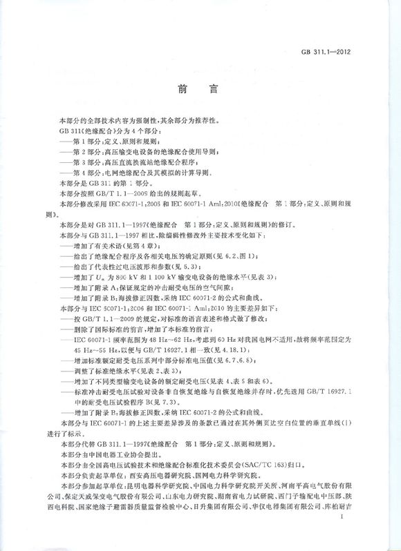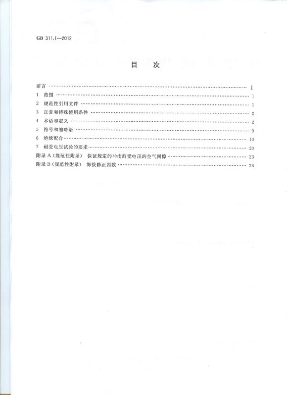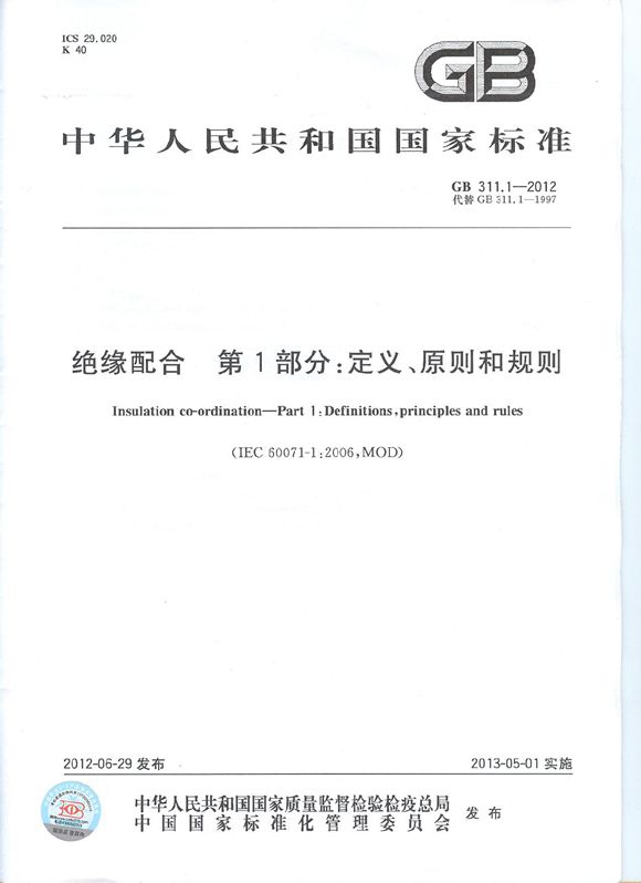 GB 311.1-2012 绝缘配合 第1部分 定义、原则和规则