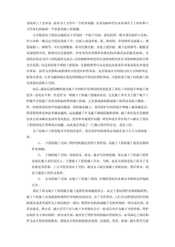 基坑工程的最基本的作用是为了给地下工程敞开开挖创造条件。