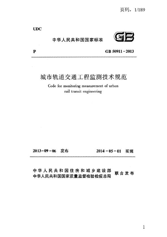 北京城建勘测设计研究院有限责任公司编制,2013年发布的城市轨道交通工程监测技术规范。