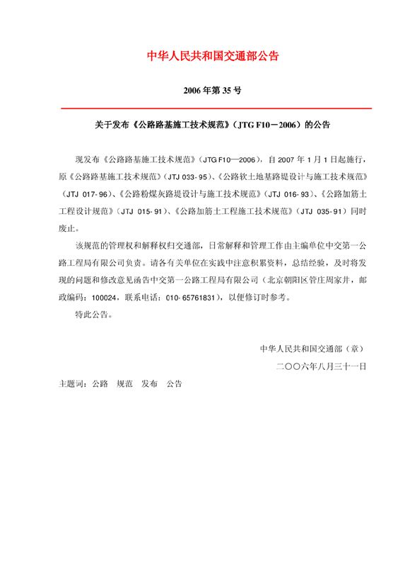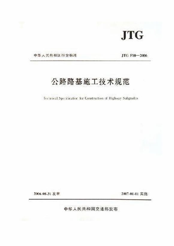 JTGF 10-2006 公路路基施工技术规范高清晰PDF
