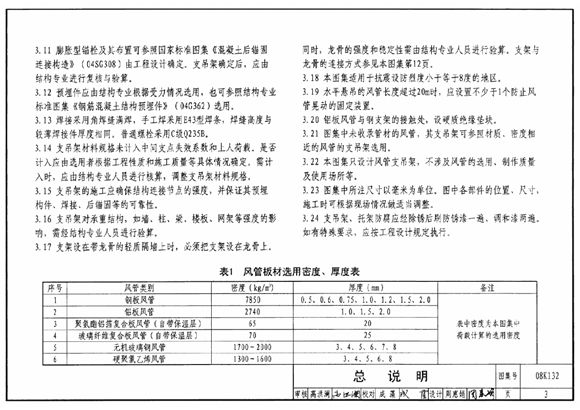 此图集中包含了金属风管和非金属风管安装支架材料选用,说明详细。