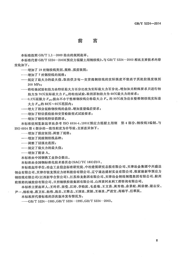 本文档为:GB_T5224-2014预应力混凝土用钢绞线,适用于由冷拉光圆钢丝及刻痕钢丝捻制的用于预应力混凝土结构的钢绞线。内容详实,可供参考